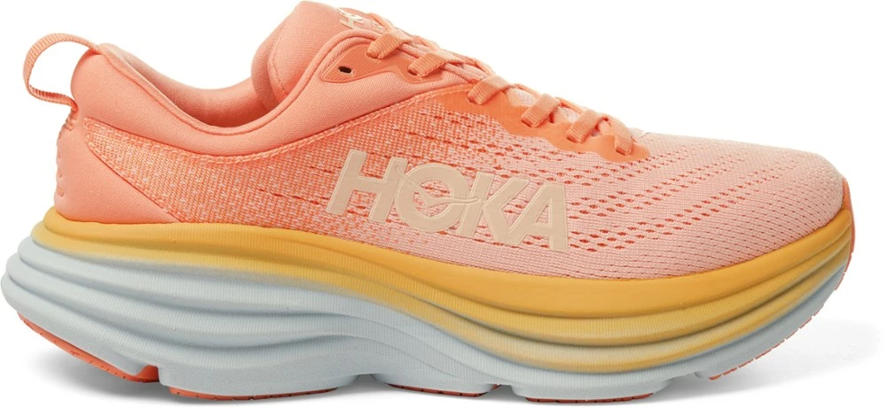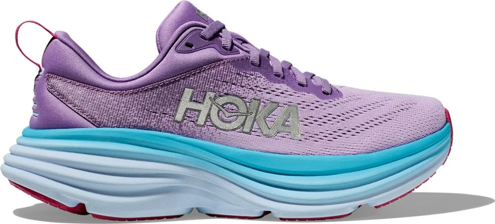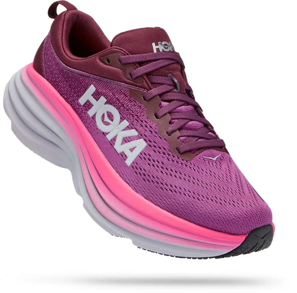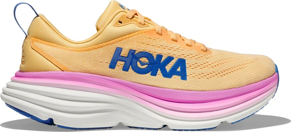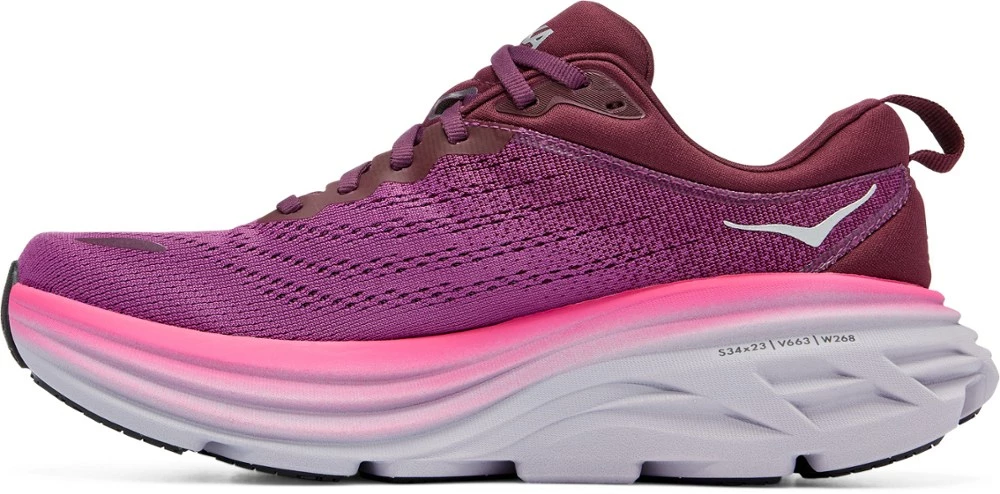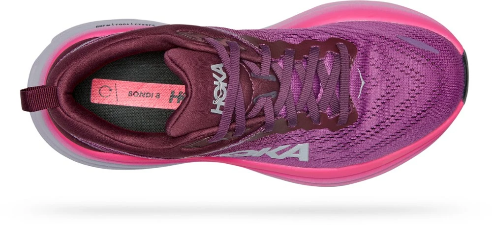 Reworked with an extended heel geometry, pillowed tongue and softer, lighter foams, the HOKA Bondi 8 women’s road-running shoes take a bold step forward to a distinctly different ride.