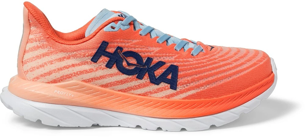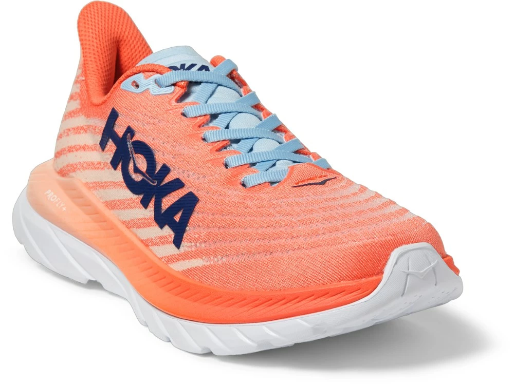 These lively pavement pounders are race ready. The women’s HOKA Mach 5 road-running shoes have a little more “oomph” behind them so your feet will feel fresh no matter the tempo.