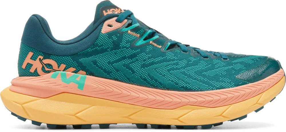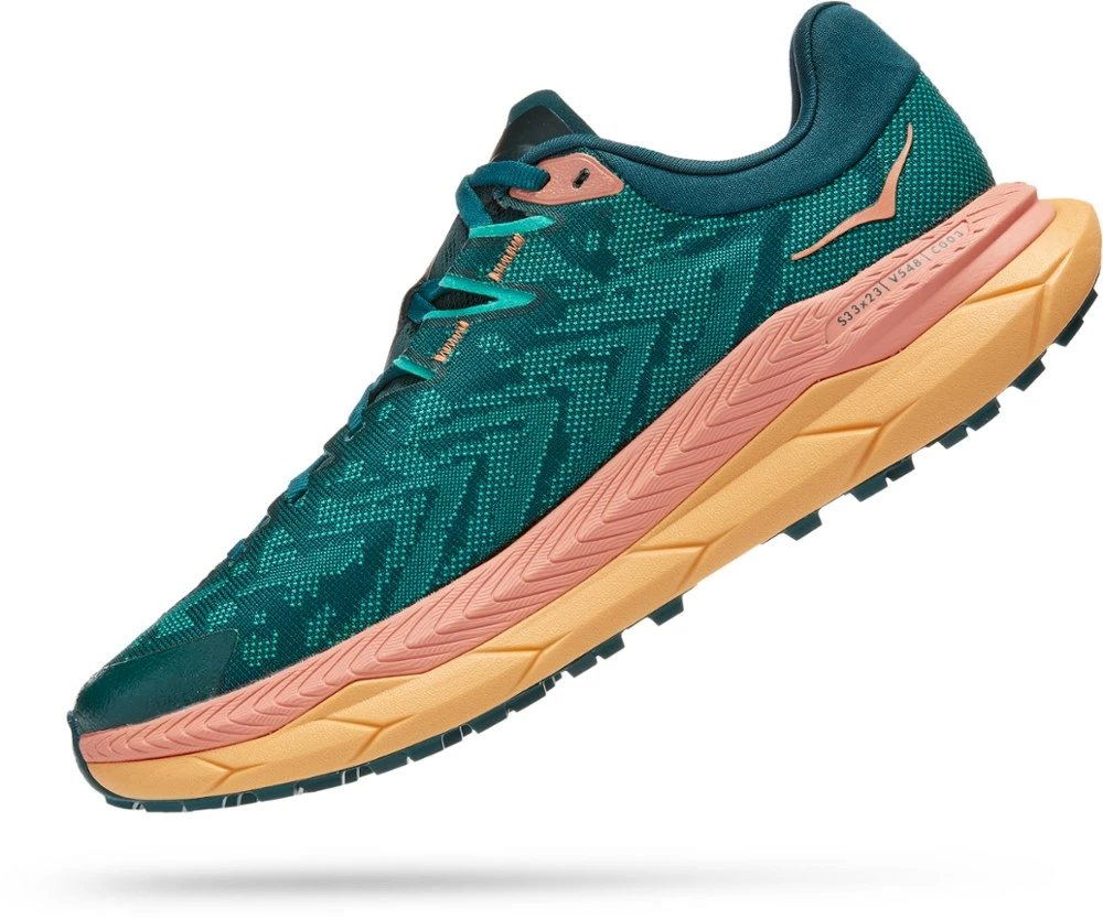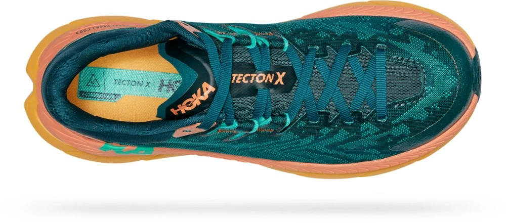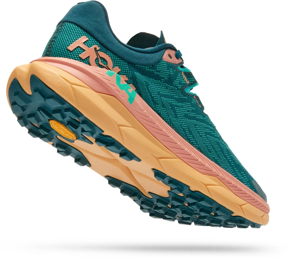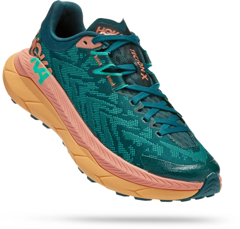 Built for speed and bolstered by Vibram® Megagrip, the HOKA Tecton X women’s trail-running shoes incorporate propulsive carbon fiber plates to unleash seismic potential on rugged trails.