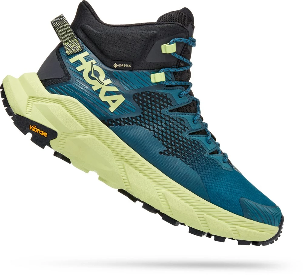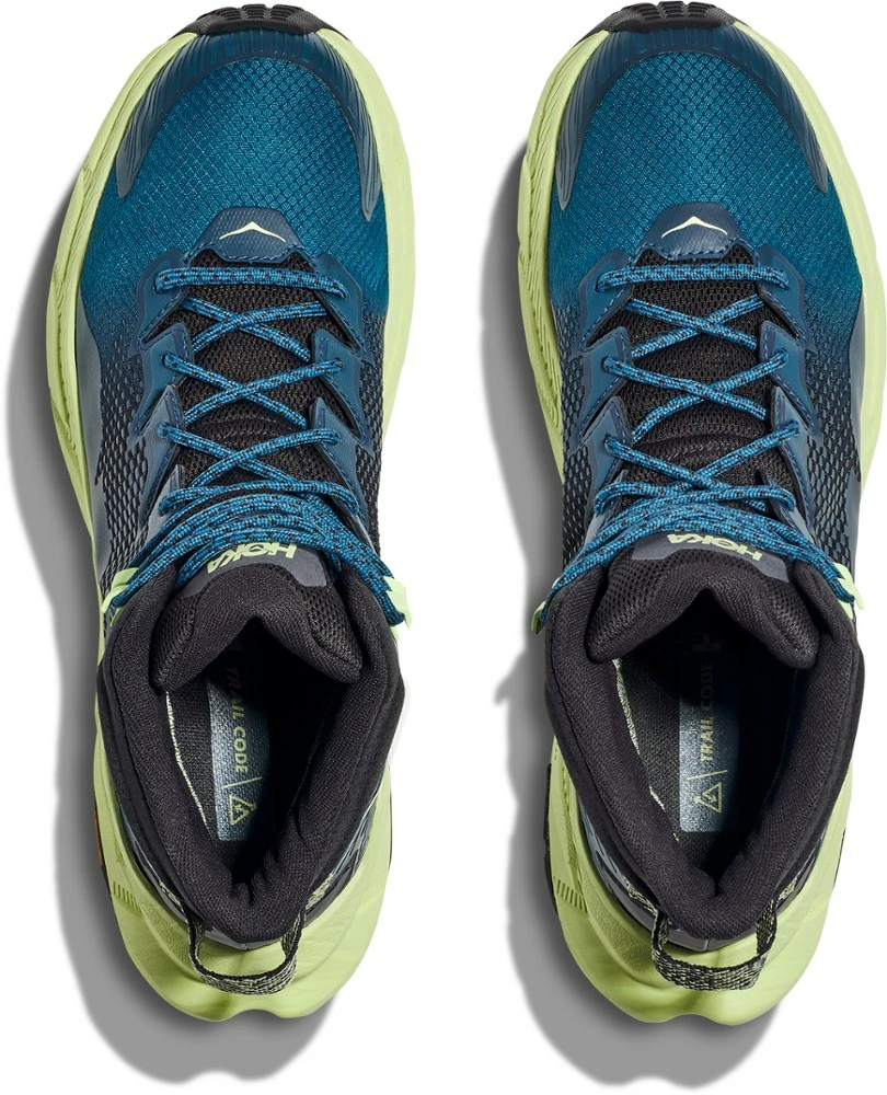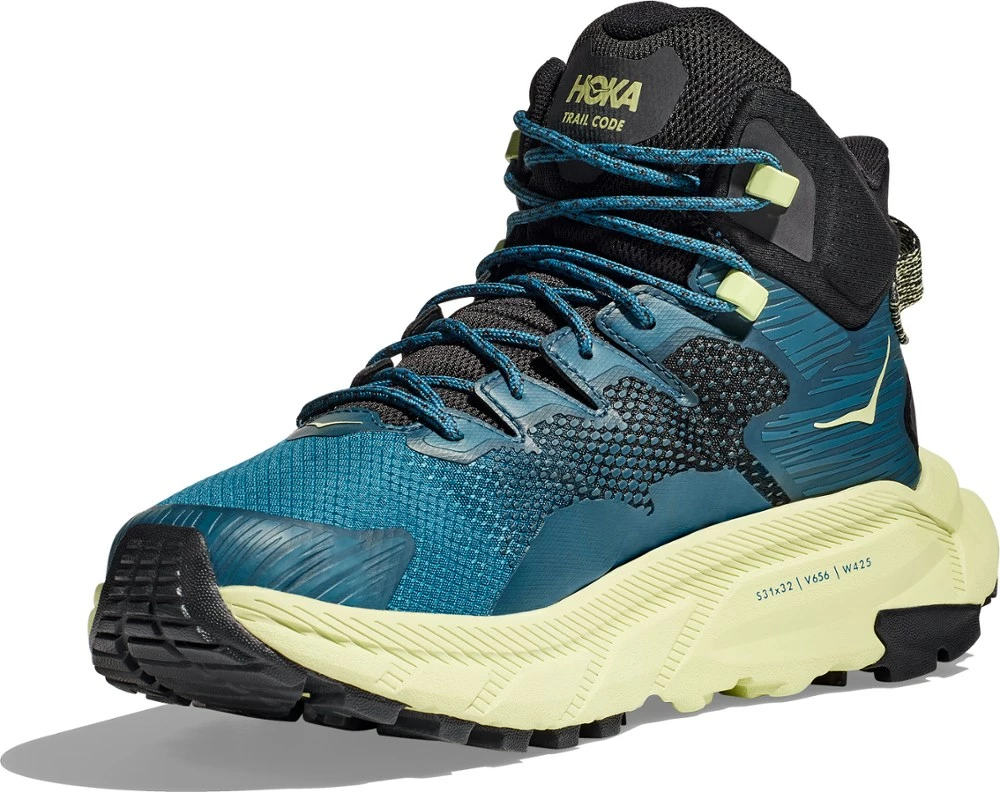 Dynamic and made for exploring, the men’s HOKA Trail Code GTX hiking boots hit the sweet spot between lightweight and cushioned. They sport HUBBLE® heels with SwallowTail™ geometry.