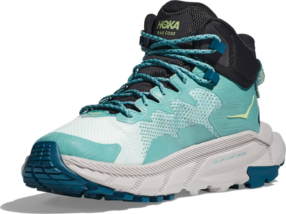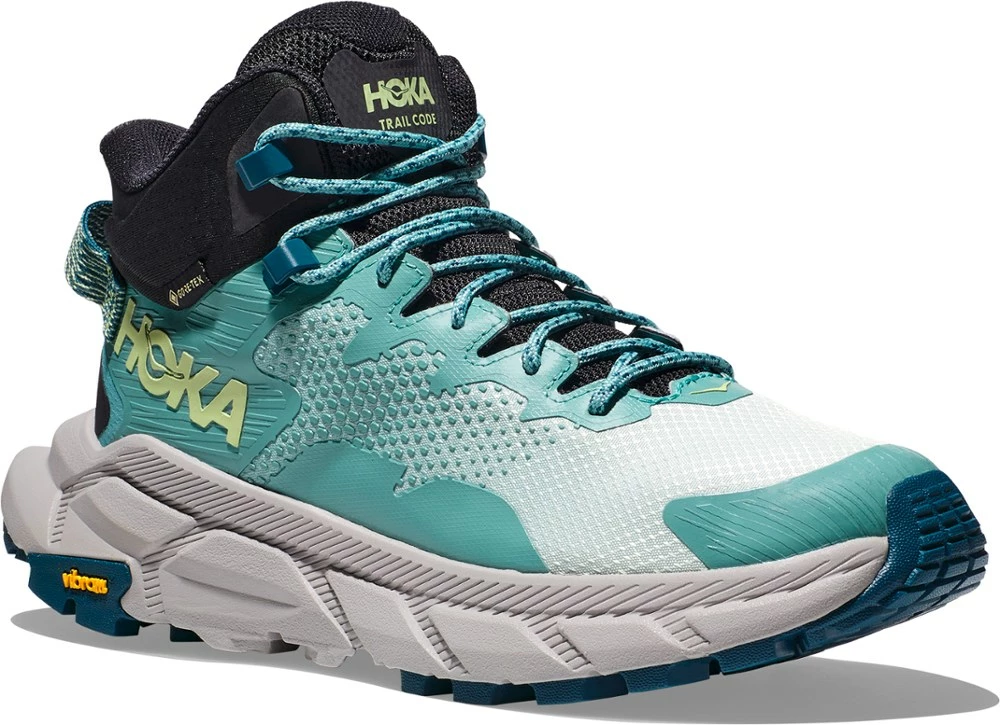 Dynamic and made for exploring, the women’s HOKA Trail Code GTX hiking boots hit the sweet spot between lightweight and cushioned. They sport HUBBLE® heels with SwallowTail™ geometry.
