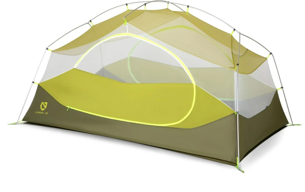 With angular patterning reminiscent of mountainscapes, the NEMO Aurora 2P tent with footprint is a versatile and inviting home for adventure—ideal for car camping but light enough for backpacking.