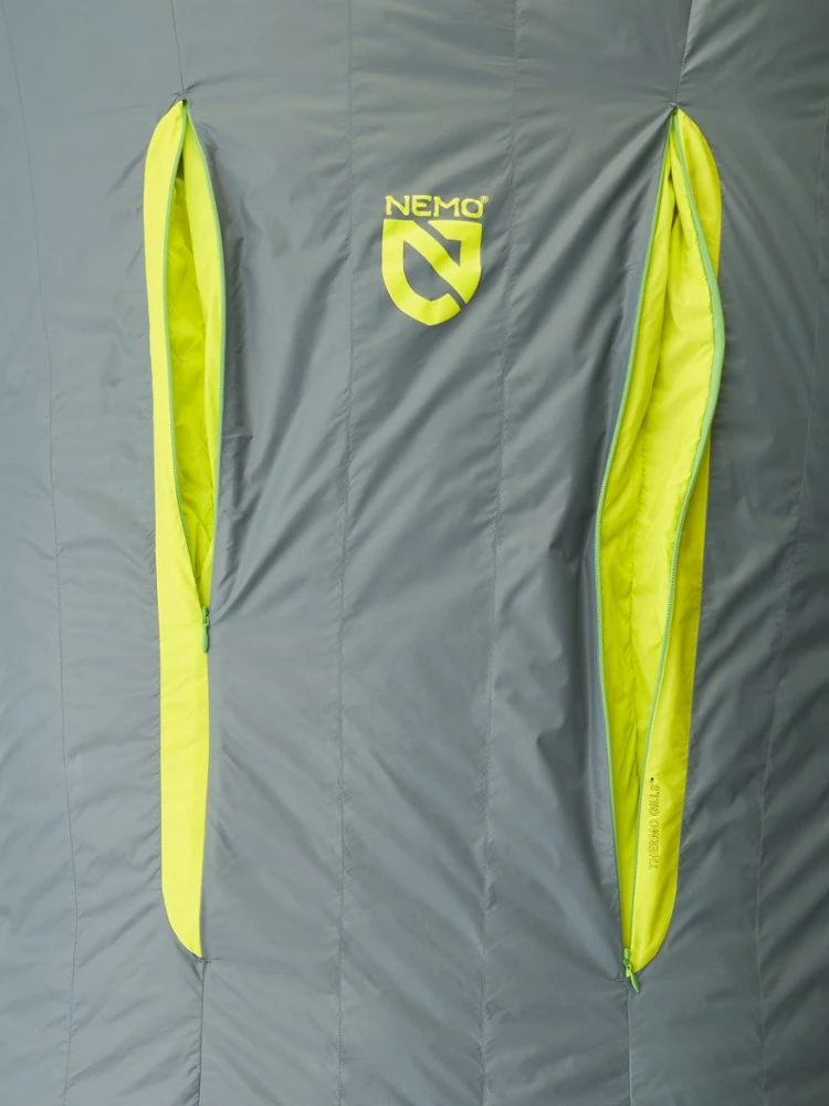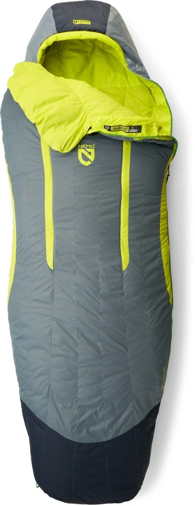 - Opposite-sided zippers on Disco men’s and women’s bags increase versatility by allowing them to be zipped together into a double sleeping bag
