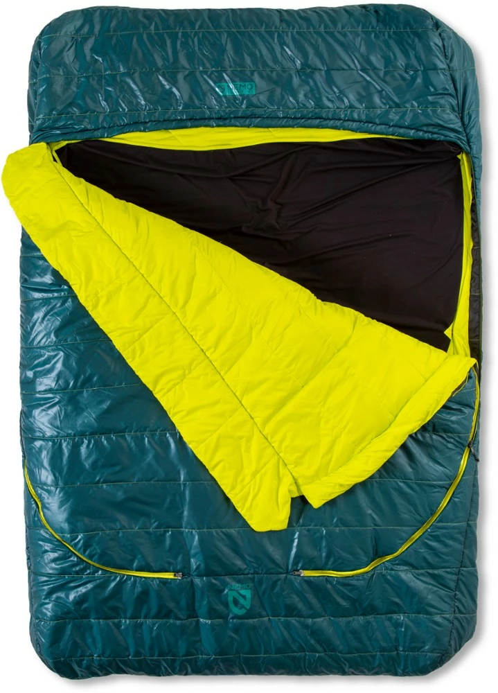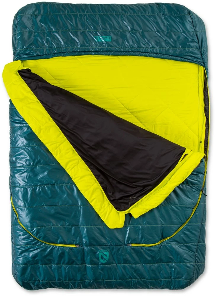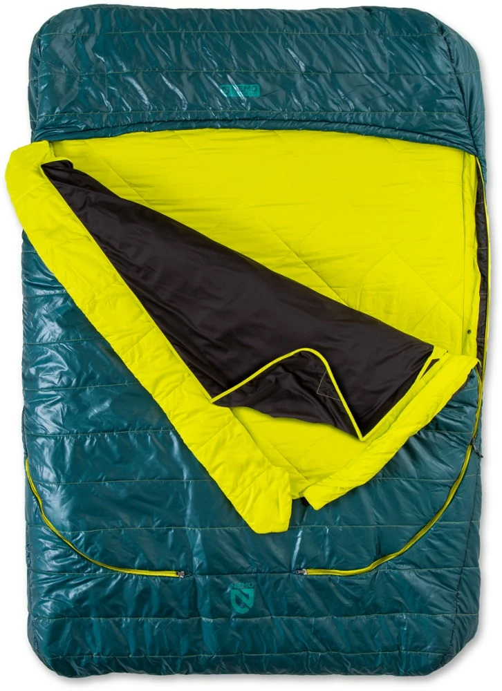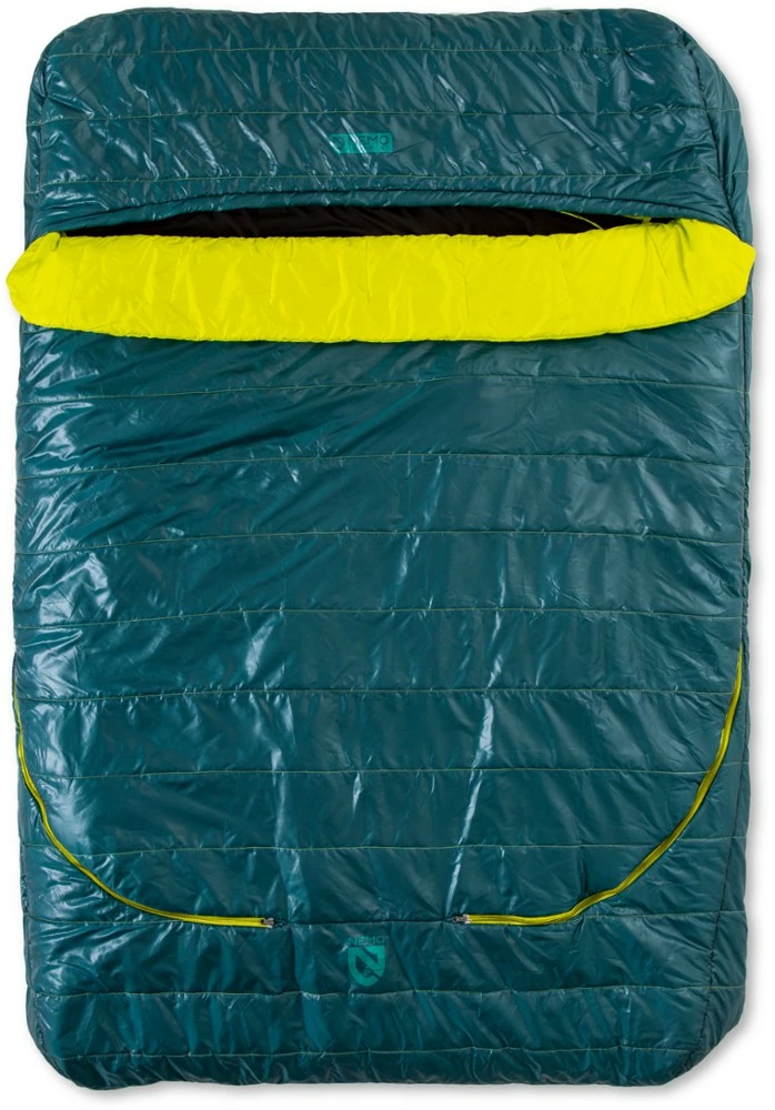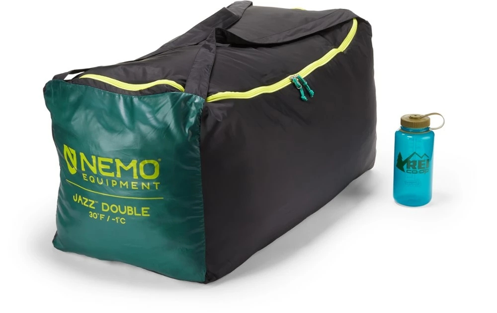 Bring the experience of your bed at home with you wherever you choose to make camp with the NEMO Jazz 30 Double sleeping bag—its bedsheet, insulation and spacious cut provide comfort for 2 campers.