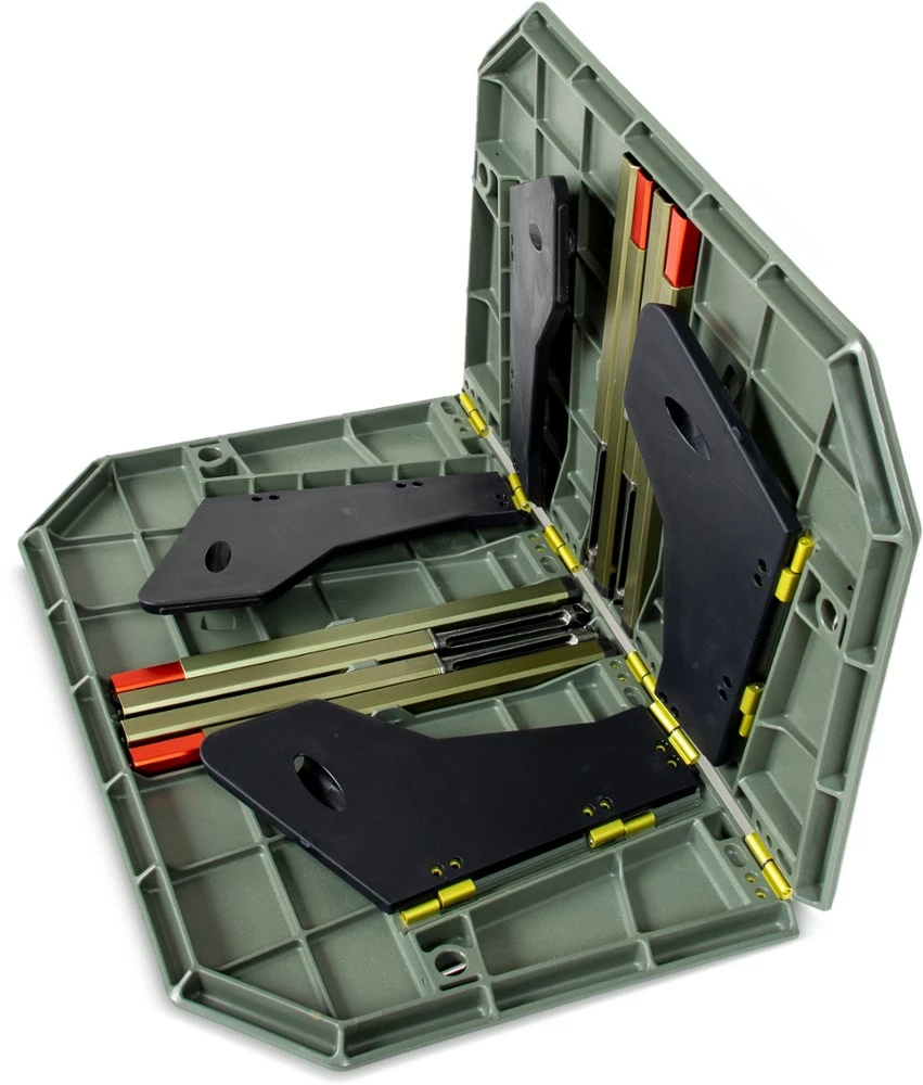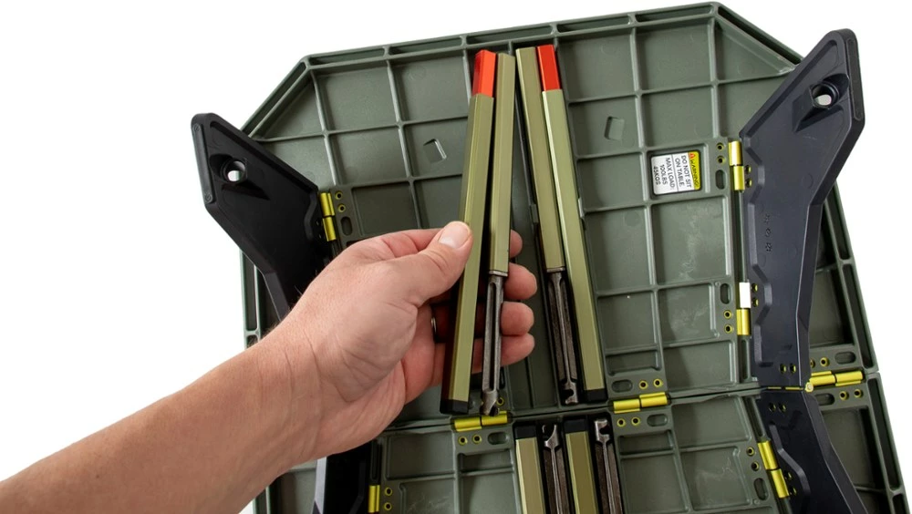 - Solid aluminum legs are integrated with carbon fiber and zinc pole tips for a stable and supportive outdoor camp table