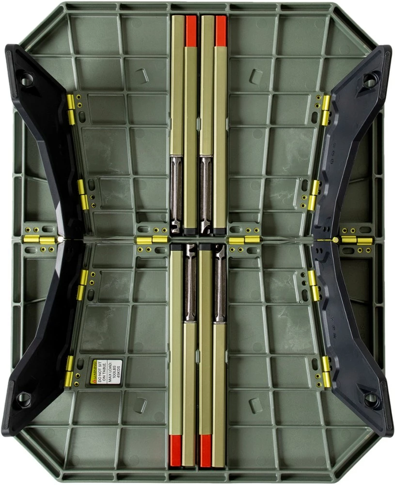 - Custom-engineered aluminum hinges are blind-molded into the tabletop for a lifetime of performance