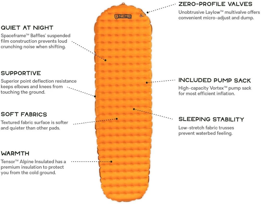 Stretch out on a portaledge or mountain bivouac and sleep deeply with the NEMO Tensor Alpine air pad under you. It offers reflective warmth and a light, compact design that doesn’t sacrifice comfort.