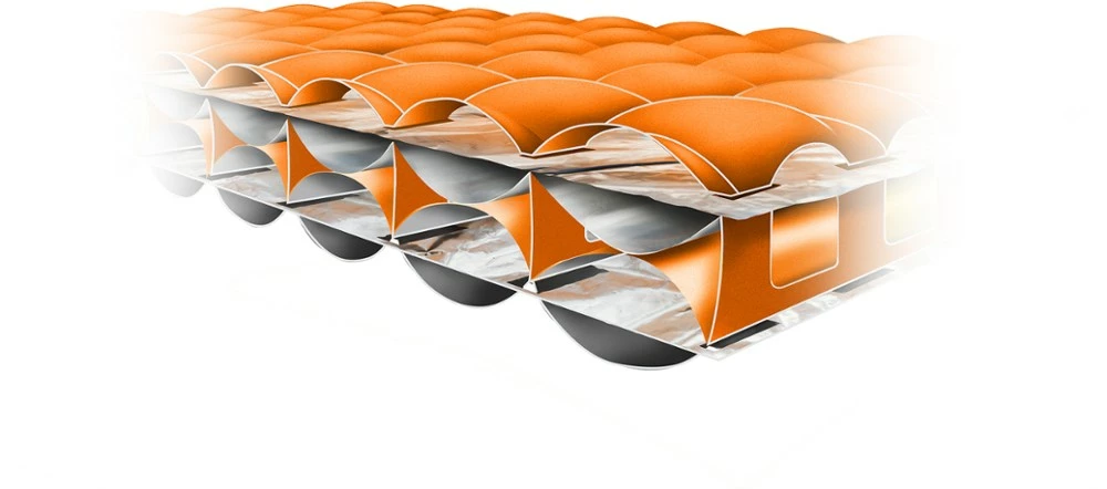 - Patent-pending Spaceframe Baffles™ create low-stretch trusses that provide 3 in. of stable, cushioned loft