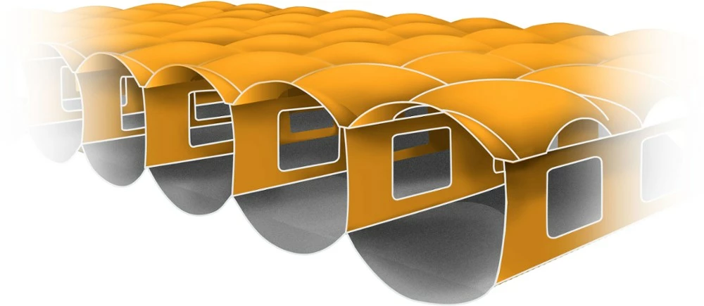 - Spaceframe baffles offer unparalleled stability and weight distribution, using low-stretch, die-cut trusses that eliminate springiness