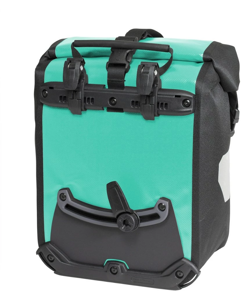 - Symmetrical shapes allow use on the right or left side; can be combined with a rack-pack on a rear rack