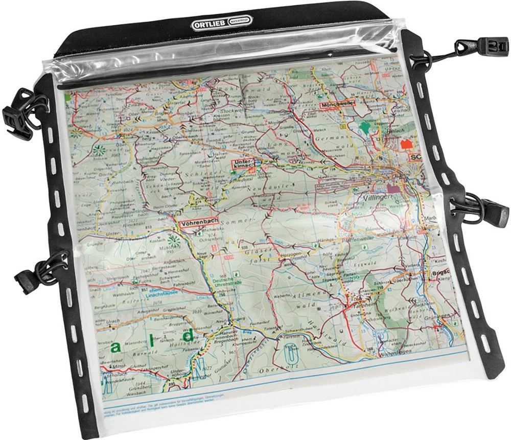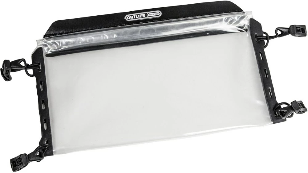 The waterproof, universal Ortlieb Ultimate map case affixes to your Ultimate handlebar bag for easy navigation on bikepacking tours—or you can wear it around your neck while hiking.